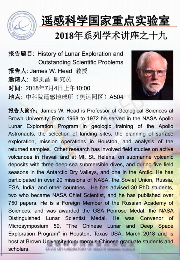【7月4日讲座】James W. Head 教授:History of Lunar Exploration and Outstanding Scientific Problems