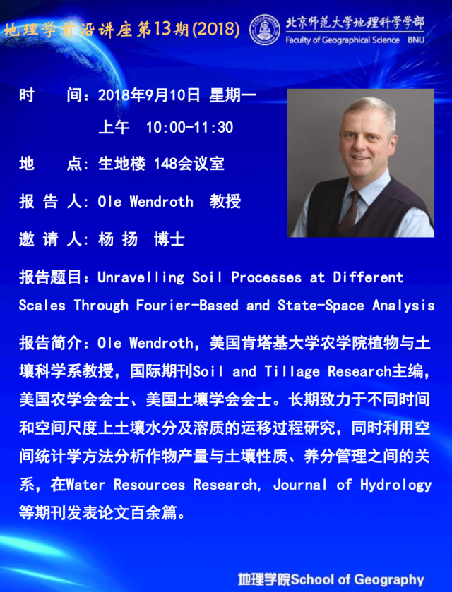 【9月10日讲座】Ole Wendroth:Unravelling Soil Processes at Different Scales Through Fourier-Based and State-Space Analysis