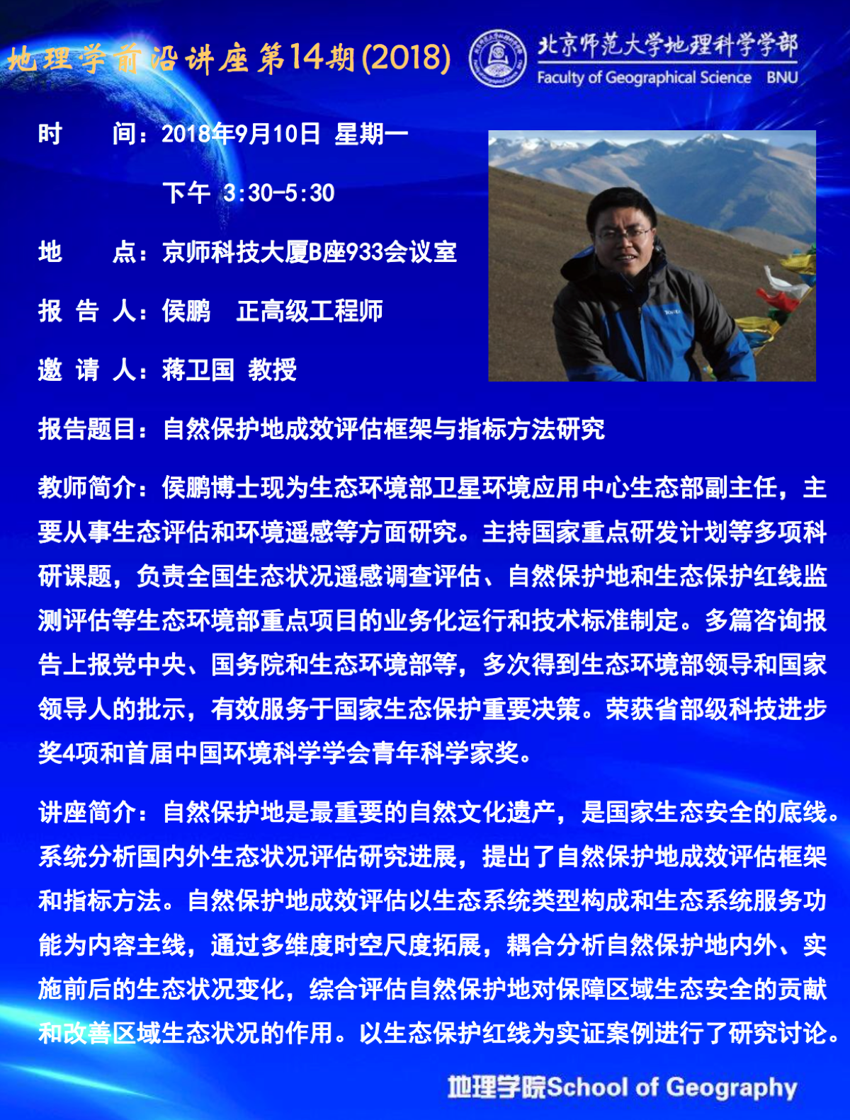 【9月10日讲座】侯鹏:自然保护地成效评估框架与指标方法研究