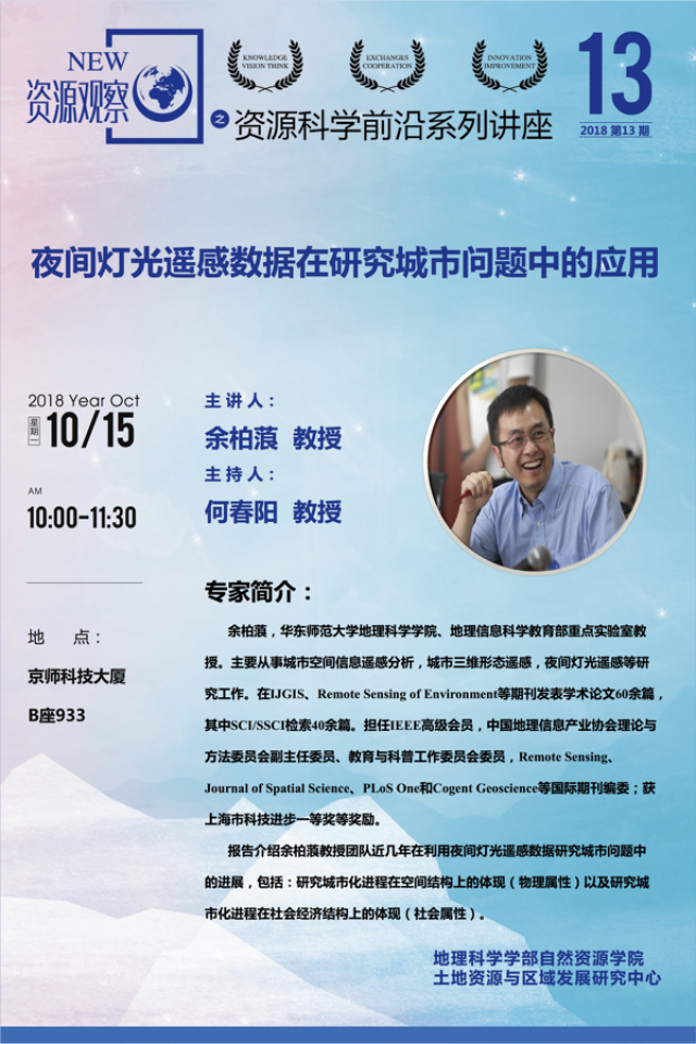 【10月15日讲座】余柏蒗:夜间灯光遥感数据在研究城市问题中的应用