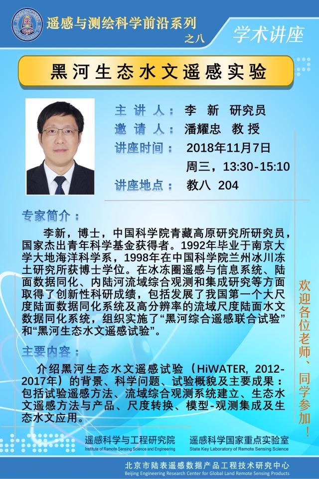 【11月7日讲座】李新:黑河生态水文遥感试验