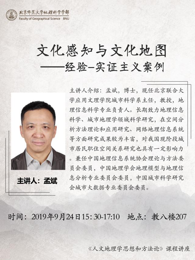 【9月24日讲座】孟斌,文化感知与文化地图——经验-实证主义案例