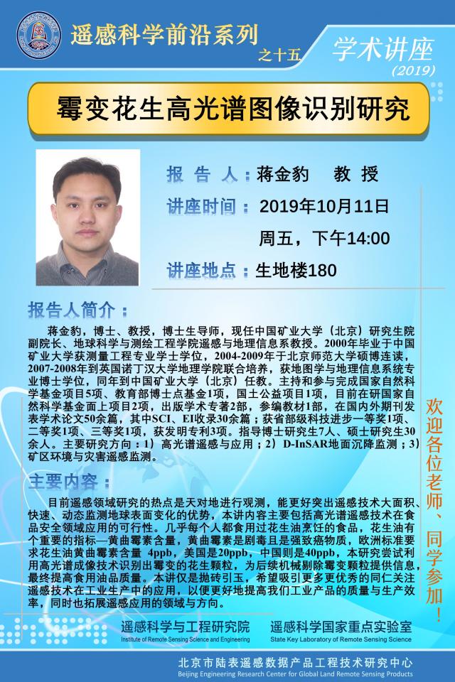 【10月11日讲座】蒋金豹,霉变花生高光谱图像识别研究