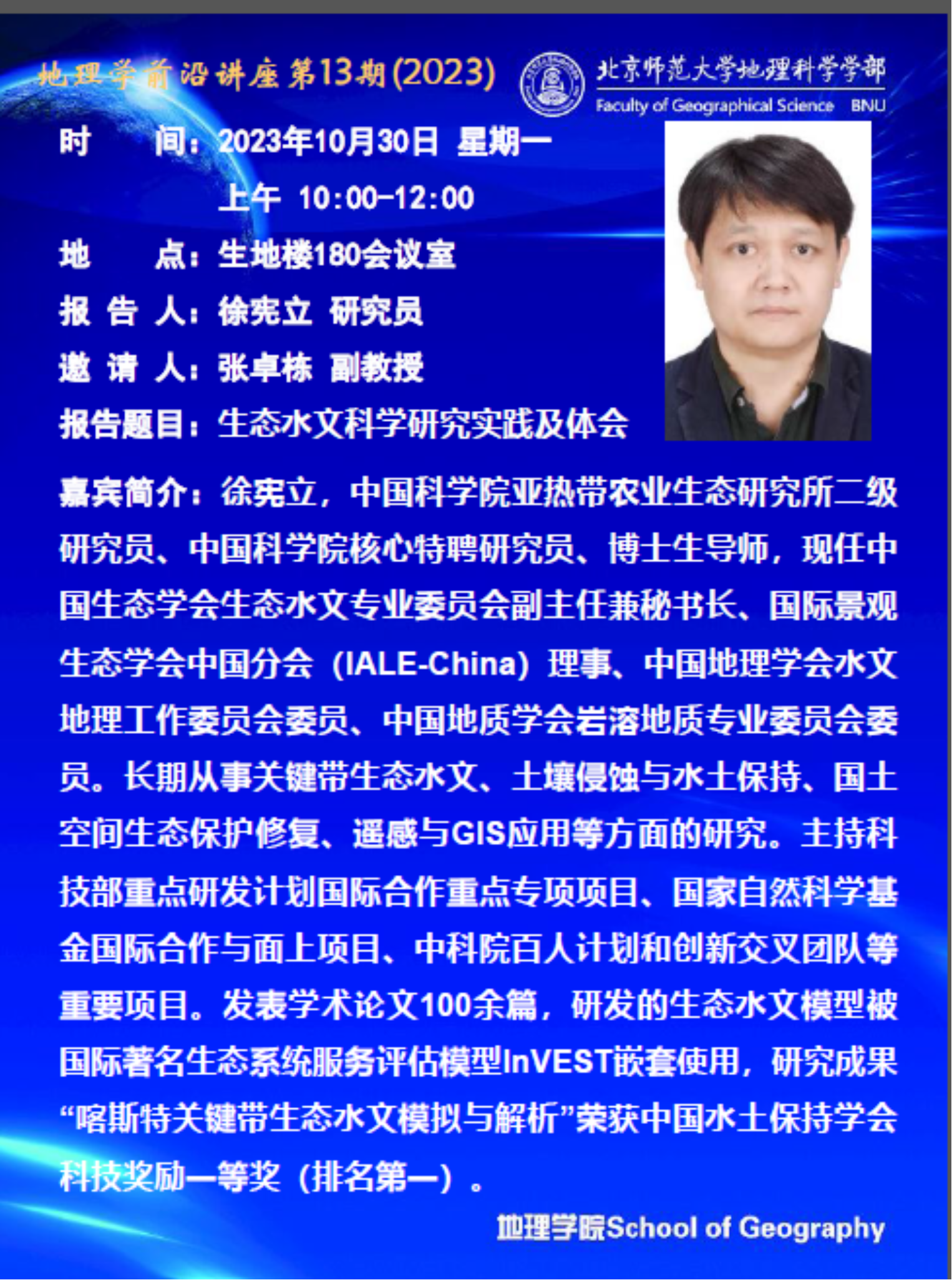 【10月30日】徐宪立 研究员,生态水文科学研究实践及体会