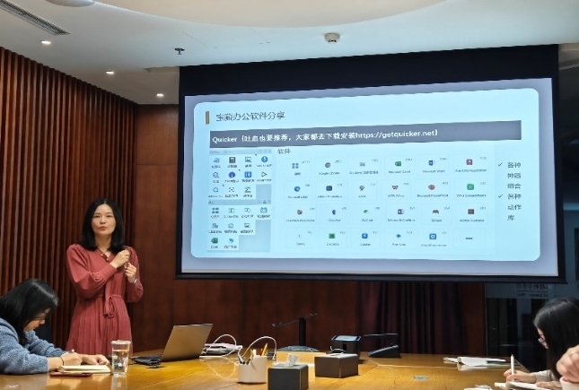 会议邀请了在第四届青年管理干部技能竞赛中分别荣获一等奖和二等奖的刘静老师、曹潇元老师和丁佳佳老师分享她们的参赛经验和个人成长历程。三位老师分别从公文写作、文件解读、情景模拟、综合展示四个方面介绍了备赛经历与参赛心得,带领同志们领略了竞赛的精彩过程,分享了办公中的宝藏软件,现场讨论热烈。
