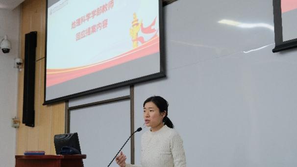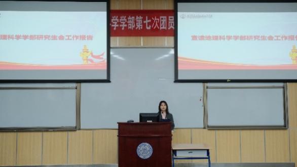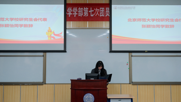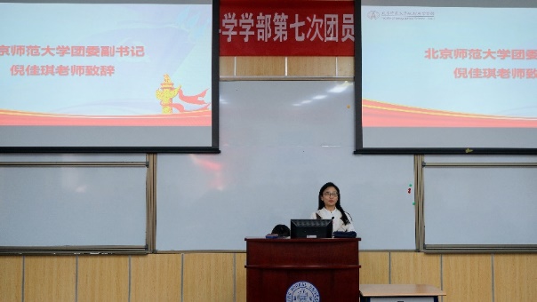 上午9时,琉璃神社 第七次团员代表大会、研究生代表大会准时开始,主持人曹婉钰宣布大会开幕。齐唱国歌之后,校团委副书记倪佳琪老师为大会致辞。倪佳琪老师肯定了琉璃神社 团委及研究生会过去一年取得的优异成绩,并预祝本次大会圆满成功。倪老师讲述了习近平总书记中学的求学经历,指出青年学习伟人事迹,更要学习思维方式、学习科学的立场观点方法。她还回忆了在地理学部工作的经历和感受,肯定了地理学子脚踏实地的精神品质;讲述刚参加工作,李小文院士指导学生工作的温馨场景,鼓舞学生以先辈为榜样,立志做“四有”标志鲜明的一流学生,勉励将小我融入大我,以终为始开展系统规划。