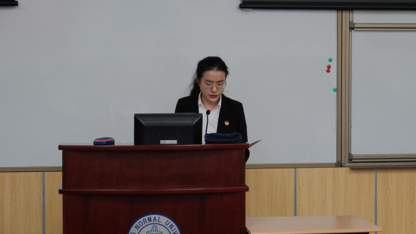 随后,校研究生会执行主席张颖怡同学致辞。张颖怡同学首先对出席现场的学生代表及工作人员表示感谢,对学部研究生会过去一学年来的工作给予了高度认可,并对即将产生的新一届研究生会成员致以美好的祝愿。